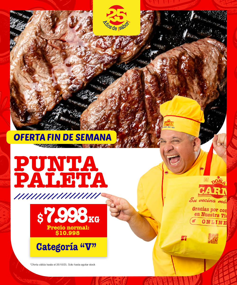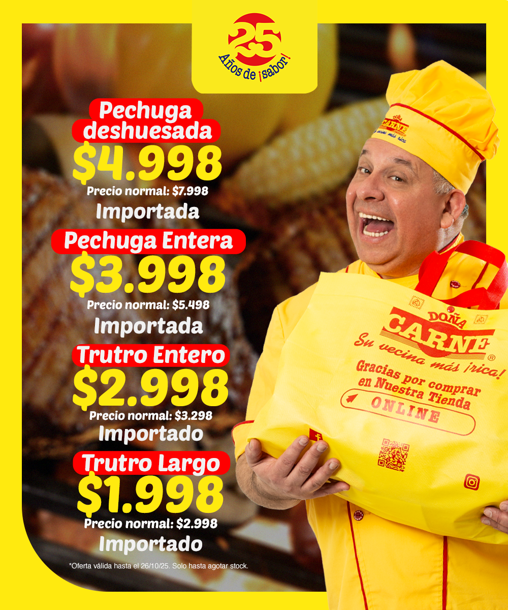 Porque en Doña Carne siempre puede elegir el trozo que más le conviene, le puede pedir a nuestros Cortadores que se lo corten como quiera y lo paga, sin condiciones, con cualquier medio de pago. En Doña Carne estamos para atenderla y darle en el gusto, con el precio más ¡rico! de Chile.