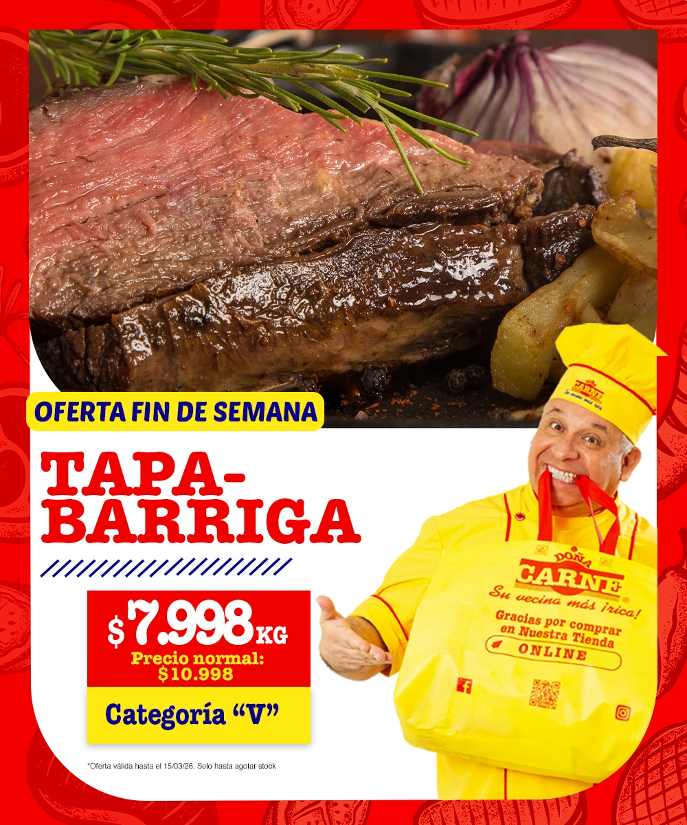 Porque en Doña Carne siempre puede elegir el trozo que más le conviene, le puede pedir a nuestros Cortadores que se lo corten como quiera y lo paga, sin condiciones, con cualquier medio de pago. En Doña Carne estamos para atenderla y darle en el gusto, con el precio más ¡rico! de Chile.