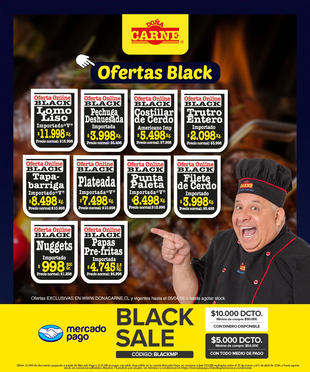 Porque en Doña Carne siempre puede elegir el trozo que más le conviene, le puede pedir a nuestros Cortadores que se lo corten como quiera y lo paga, sin condiciones, con cualquier medio de pago. En Doña Carne estamos para atenderla y darle en el gusto, con el precio más ¡rico! de Chile.